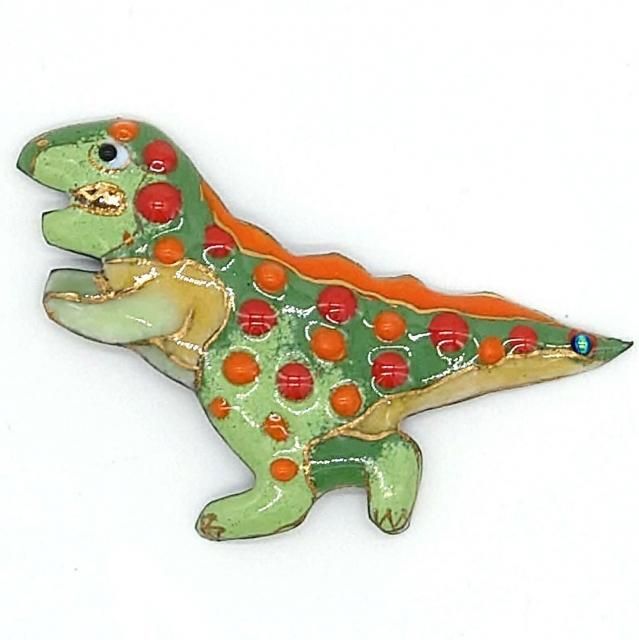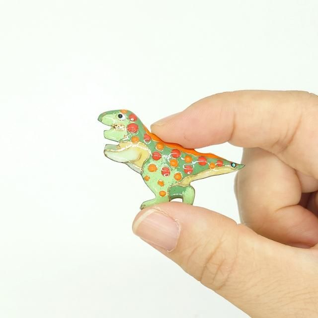 【キッチュでカラフル!小さな恐竜ブローチ】