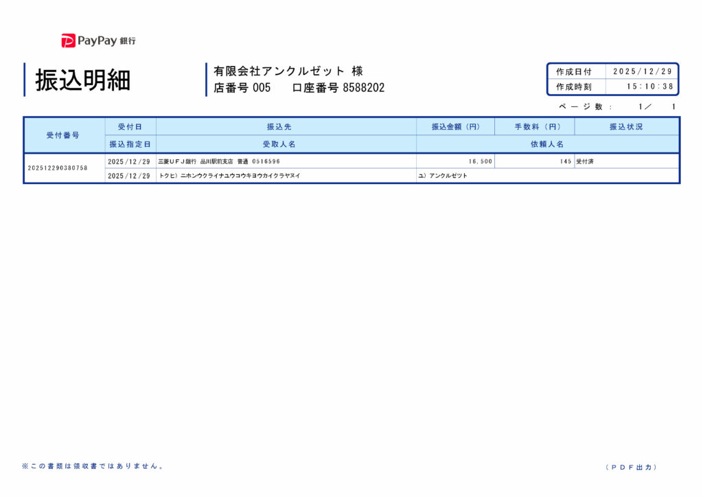 12/29付で、16,500円を寄付いたしました。